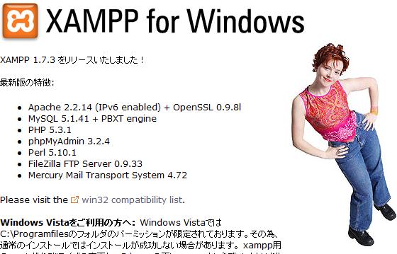 サイト改装への道(4) 「XAMPPのインストール」 デバグ環境として、作業PC(Windows)にXAMPPでApacheなどを入れよう。 XAMPPのサイトから自己解凍型RAR アーカイブをダウンロードして 、実行! 問題がないように、インストール場所は”Program files”ではなく”C:”に。(すっげ~ファイルの量!)