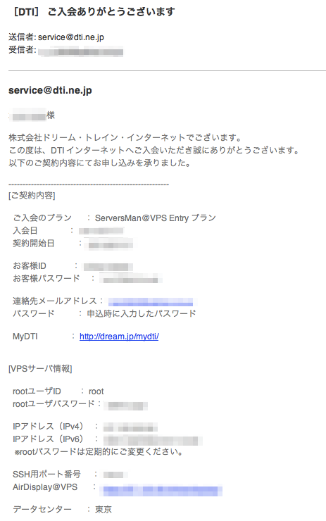 「DTI ServersMan@VPSサービス」の「Entryプラン」を申し込む。