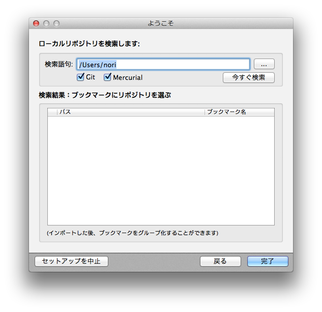 今回は、“/Users/[あなた]/Repogitory/Test”で。