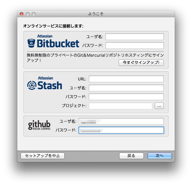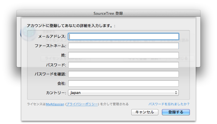 ただ、SourceTreeは無料だが、引き続き使用するには登録が必要になっている。