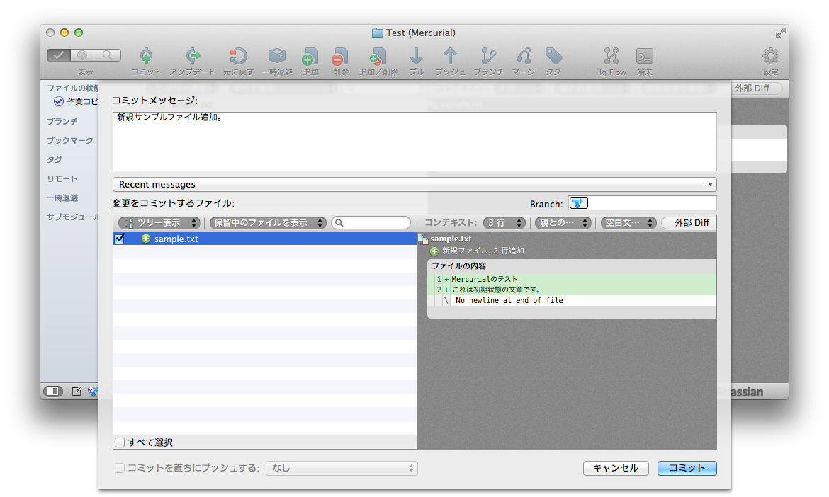 変更を確定するには、コミットが必要。「コミット」アイコンをクリックしよう。