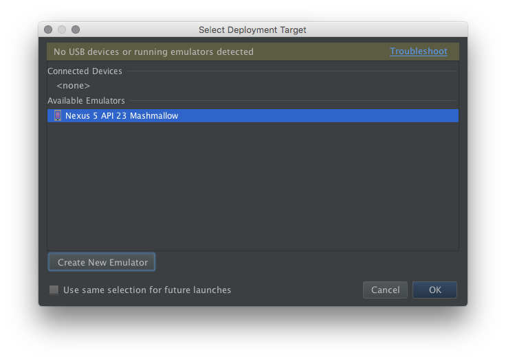 Hello world!なんて、どんな端末でも動かないと。と思って「API 1: Android 1.0」を選択。