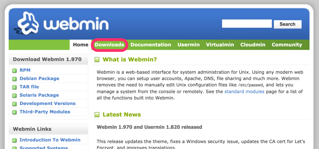 まずは、webminのサイトへ行く。