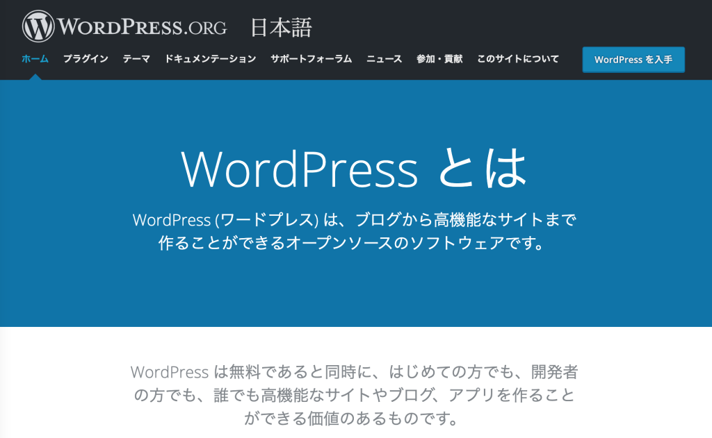 上部メニューの「ドキュメンテーション」をクリックして、「WordPressのインストール」をクリック。
